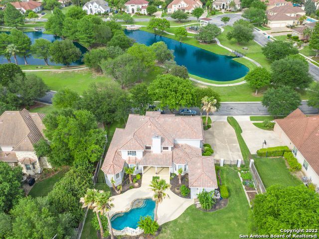 OPEN HOUSE SUNDAY MAY 15 from 2-5 PM. Stunning dream home overlooking the lake in one of the most beautiful gated subdivisions in San Antonio. This house has it all: Cathedral ceilings, gourmet kitchen with wine fridge, three living areas, master-bedroom retreat downstairs, resort-style pool surrounded by fruit trees, three-car garage with epoxied floor, updated water softener, and central location to shopping and restaurants. 5 Bedrooms/4.5 baths, 4285 sq. ft., .4 lot.