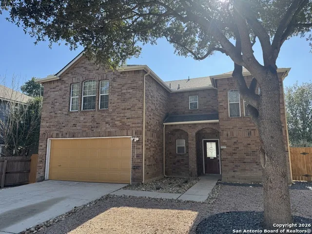 Spacious 3 bed, 2.5 bath home conveniently located in the Laurel Mountain community within minutes of multiple popular shopping and dining destinations and Lackland AFB. Xeriscaping in the front yard offers an attractive entrance and added benefit of little-to-no maintenance. Enter into an inviting open floor plan perfect for entertaining with a large family room and kitchen, and French doors opening out onto an oversized deck. Vinyl plank flooring throughout the downstairs makes for easy clean-up. Continue upstairs to find a second family area and bedrooms. Primary bedroom features an ensuite bathroom with a double sink vanity, separate shower and garden tub, and a sizeable walk-in closet with built in shelving. Community amenities include a pool, walking trails and a park.Home & carpets have been recently cleaned. Kindly remove shoes when touring.