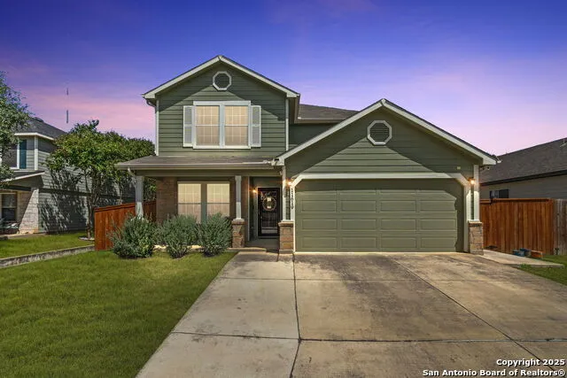 Modern style and everyday comfort come together in this beautiful 4-bedroom, 3-bathroom home in West San Antonio. The open-concept layout is designed for both entertaining and daily living, highlighted by a large kitchen with dual islands, one with bar seating stainless steel appliances, a tile backsplash, and abundant cabinetry and countertop space. The living and dining areas flow seamlessly, offering plenty of natural light and a welcoming atmosphere. One of the four bedrooms is conveniently located downstairs, perfect for guests, family, or a home office. Upstairs, a versatile loft provides extra space for relaxation, work, or play. Plush carpeting adds comfort to each spacious bedroom, while the primary suite offers a retreat of its own with a large en suite bathroom featuring dual vanities, a soaking tub, and a separate shower. Step outside to a backyard built for gatherings, complete with a large covered concrete patio ideal for outdoor dining and a shed for extra storage. With no shortage of space, this yard is ready to become your personal oasis. Conveniently located near shopping, dining, and major routes, this home offers both accessibility and comfort. With its thoughtful design and inviting spaces, it's move-in ready and waiting for your personal touch.