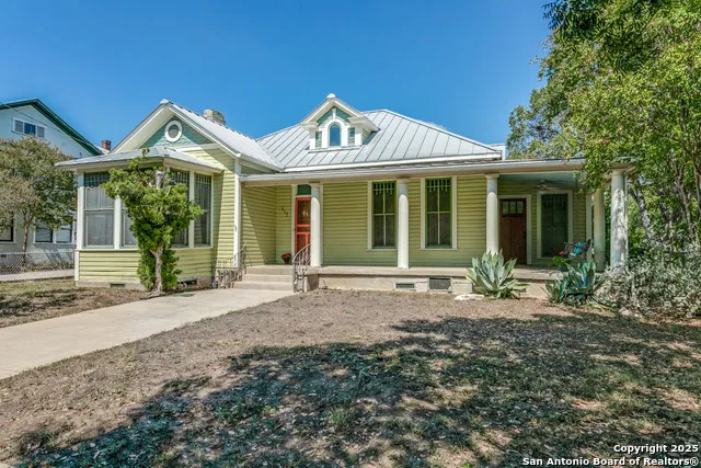 Urban living in Historic Monte Vista! This grand one-story, well into it's second century and listed in the National Register of Historic Places, is one of the oldest structures in the neighborhood. An expansive wrap-around front porch with swing lets you enjoy the vibrancy of this thriving historic and entertainment district. Mere blocks from all the popular dining spots that make Monte Vista a "destination!" The home is full of towering seven foot windows, interior glass doors and high transoms. The living room has a window-lined "bump out," offering cozy seating and a view of the tree-lined avenue. A unique double fireplace lends ambience to both the living and formal dining areas. The kitchen is large, bright and open, overlooking a New Orleans-styled bricked courtyard. (Kitchen IS plumbed for gas cooking!) Secondary bath is updated with separate shower and Japanese soaking tub. And if all of that is not enough, there is a charming three-room apartment above the detached two-car garage. Opening to a spacious deck and perched in the tree canopy, this "treehouse" features a living area, bedroom, bathroom, and bright, cheery kitchen lined with windows. Tremendous long or short-term rental opportunities. Two car garage plus extra off street parking in the oak-lined driveway. EASY BIKE RIDE TO THE PEARL! $5,000 LANDSCAPING ALLOWANCE!