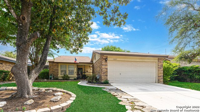Welcome home! Tucked away on a quiet street, this wonderful home is ready to move in! The open floor plan boasts vaulted ceilings throughout the large main living and dining areas. The open and flowing floor plan is equipped with three bedrooms, a large dining room, a breakfast room and spacious kitchen, convenient laundry area, and wood-burning brick fireplace. The fenced back yard boasts a concrete terrace accessible from the main living area. The primary bedroom enjoys access to a gated, private atrium adjacent to the front entrance of the home. Updates include granite kitchen countertops, fresh paint, as well as tile and laminate floors. Just a few short minutes to UTSA, USAA, Med Center, and much more. Schedule your showing today!