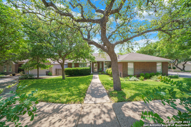 Immaculate ONE-Story on a quiet cul-de-sac with mature trees. This charming home features main level living with no carpet, storm doors for additional natural light, & a quaint front porch for enjoying neighbors. This house has it all! Spacious open floor plan, split bedroom plan, 2 living & dining areas, plantation shutters, built-in entertainment center, gorgeous fireplace, extended wood deck, & side-entry garage. The formal living space can be used as home office. Centrally located near the shopping, restaurants, & McAllister Park.
