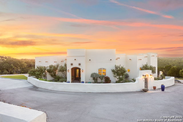 BIENVENIDOS and Welcome Home! When Fred R. Barnard said, ". . . .one picture is worth a thousand words." He must of had this home in mind. Estillo Hacienda sitting on a king size Hill Country home site. Located in the stunning Mystic Shores, your new dream home has a plethora of unique features. Elaborate and meticulous style along with detailed elegance, high ceilings, open floor plan, custom hand carved pergola style bar, vibrant colors, Mexican hand painted tile, 8 ft solid alder custom doors, plantation shutters throughout, and RO systems in both kitchens. All back doors open to hill country views to pair with the outdoor retreat perfect for entertaining. Flexing at 2960 sf, 4 bedroom, 3.5 bath home has unreal views, patio area for barbecuing and intimately hidden hot tub for relaxing. Your dream home comes with an retreat casita/mother in law quarters. Call it what you want. Additional privacy! 700 sf of additional privacy. Casita has it all, bedroom, bath, living room, kitchen and laundry with handicap accessibility. Double custom metal doors from the driveway lead to a large workshop/storage room not to mention the oversized 3 car garage. Located in the heart of the hill country between Austin and San Antonio with amenities including two community pools, lakeside park, sports courts, community boat ramp, community boat & RV parking, and beautiful nature preserve. This dream home is a must have.