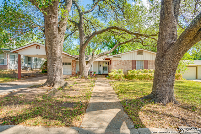 Great home in centrally located Dellview near the Medical Center & downtown SA! This one-story gem is in NEISD School District, walking distance to Dellview Elementary & Dellview Park. Three bedrooms, two baths and a flex room that can be used as a family rm, additional bedroom or study. New roof (2020), central HVAC (2021) & new stove. One Car Garage & One Car carport. Backyard has a nice covered patio with mature trees & a large shed for storage. Close to major highways. Refrigerator, Washer, dryer & TV in kitchen stay with the home!