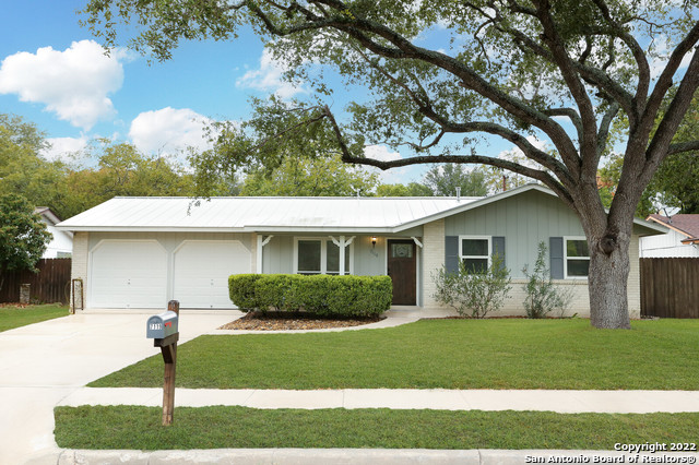 Located near the Medical Center, this three-bedroom, two-bath home in the popular area of Leon Valley has been very well cared for and is ready for new owners. Single-story, all-level with no steps and no carpet, this home has many upgrades and great features. Well-landscaped with a lovely backyard and two covered porch areas, you will enjoy relaxing amongst the mature trees, and guests will be impressed when you invite them over for backyard barbecues! Inside, you'll appreciate the durable and beautiful Luxury Vinyl Plank flooring with an Acacia Wood pattern. The home flows very well. Just off the front entry is the formal living room, which then leads into the dining, kitchen, and family room areas. The kitchen boasts granite countertops and a natural gas range for those who like to cook. The primary bedroom with an attached ensuite is separate from the secondary bedrooms. Both bathrooms are updated with designer accents, and all windows have been upgraded for energy efficiency. The metal roof was replaced a few years back and really gives the home a custom look. No HOA. You will also really enjoy the convenience of the neighborhood pool, located a very short stroll from your front porch, and the convenience of being able to walk over to popular Raymond Rinkus Park. This wonderful home has much to offer!